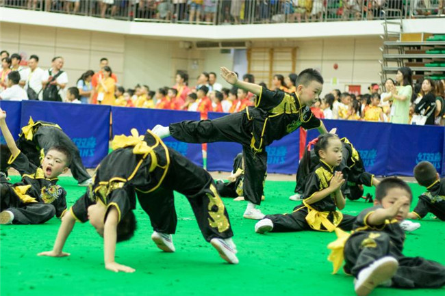 本屆嶺南武術(shù)文化周舉行了首屆廣東省幼兒武術(shù)嘉年華和“中國武術(shù)段位制”初段位考評賽的比賽。賽場上,最吸引眼球的無疑是來自全省各地幼兒園的2000多名小朋友的武術(shù)表演,他們當(dāng)中年齡最小的只有三歲。今年幼兒組設(shè)置了五步拳、初級一路長拳、自編拳術(shù)、長器械、短器械等基礎(chǔ)套路,以及集體項目的表演。別看選手們年紀(jì)都這么小,一張張小臉上卻是精氣神十足。一招一式有板有眼,看著他們童趣十足卻又一絲不茍的表演,讓人不禁深受感染。比賽優(yōu)勝者還將獲得獎牌和相應(yīng)的武術(shù)技術(shù)等級證書。