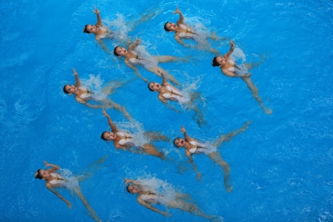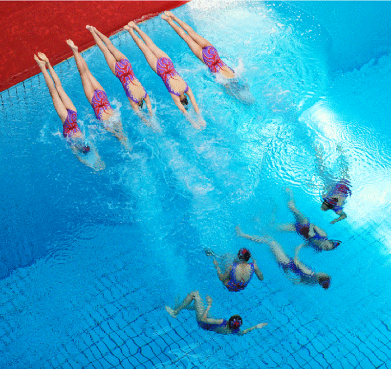 花樣游泳是一項具有藝術性的優(yōu)雅的體育運動,它也需要力量和技巧,需要許多年不斷的訓練來掌握。有十個裁判關注她們的每一個動作,運動員必須做出許多組推舉、旋轉(zhuǎn)、彎曲,所有這些動作都不能借助于池底的地面,還要在不呼吸的情況下作伸展,常規(guī)動作要持續(xù)五分鐘,同時進行表演,而即使在最緊張的常規(guī)動作要求里,水上芭蕾運動員們還要努力保持輕松的形象。