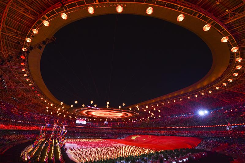 開幕式文體展演分六個部分,包括序篇《時代召喚》、第一篇章《紅日照東方》、第二篇章《水擊三千里》、第三篇章《萬里長空行》、點(diǎn)火儀式《鳳凰涅槃》及尾聲《我愛你中國》。
