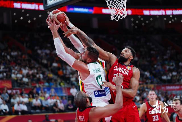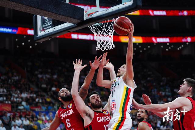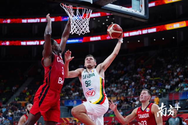 第三節(jié)末段,立陶宛雙塔雙雙下場(chǎng)休息,加拿大追至僅差9分。但整體實(shí)力更強(qiáng)的立陶宛外線(xiàn)發(fā)難,第三節(jié)結(jié)束,立陶宛以70-54領(lǐng)先16分,分差迅速被擴(kuò)大。