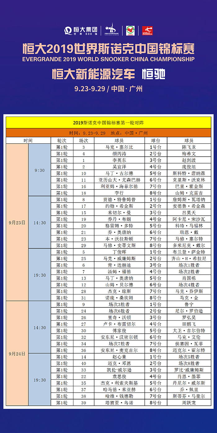本屆賽事球星陣容豪華,包括當(dāng)今世界斯諾克“一哥”特魯姆普、尼爾?羅伯遜、希金斯、塞爾比等在內(nèi)的TOP20選手悉數(shù)出戰(zhàn)。中國軍團由丁俊暉領(lǐng)銜,共18人。除了巨星之間的對決,一大看點當(dāng)屬丁俊暉的“排名保衛(wèi)戰(zhàn)”,小暉能否在職業(yè)生涯起步地的廣東打出好局、重回世界前十,是球迷關(guān)注的焦點之一。