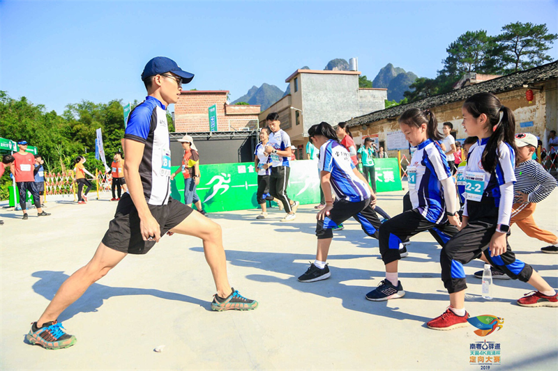 水口秦漢古道有大量石板路,保存完好,道路旁翠綠的田園、古舊的民居,構成一幅淡雅清秀的山水畫卷,因此也是徒步登山者的樂園。22日上午,就有約400名徒步登山愛好者齊聚秦漢古道水口段,進行全長約8公里的徒步活動。兩項不同的體育活動,都以南粵古驛道為載體同步舉行,陽山動感無限。
