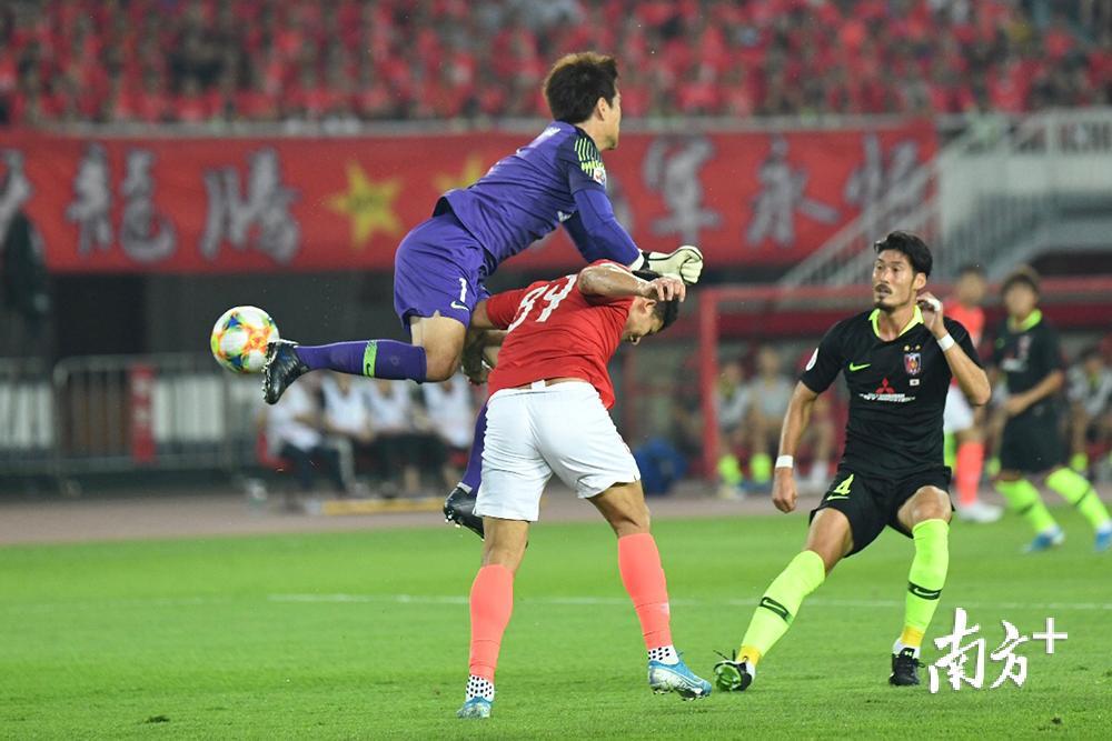 艾克森與浦和門將激烈碰撞后頭部出血。