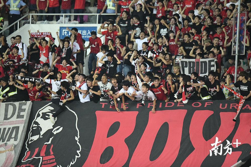 看到晉級(jí)希望的浦和紅鉆球迷陷入瘋狂。