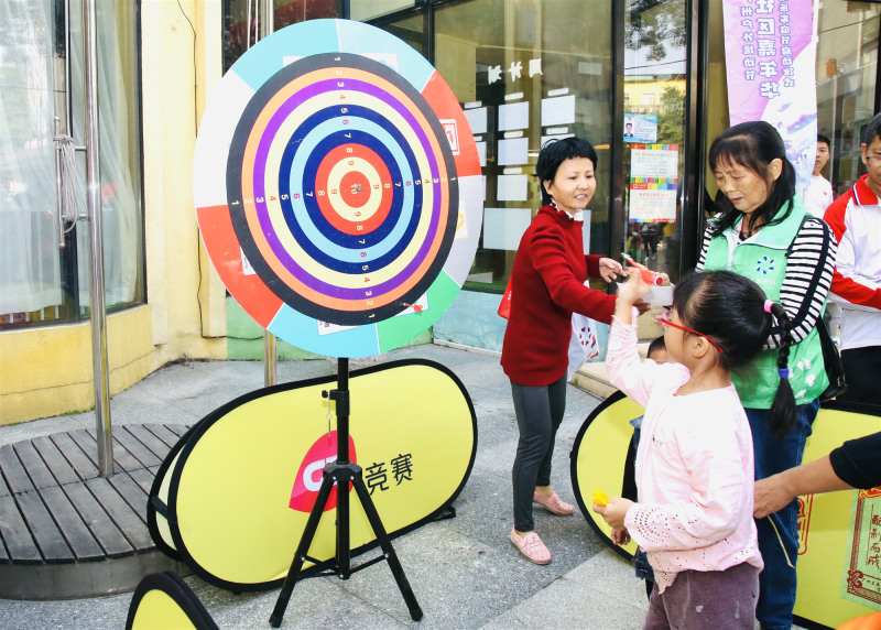 在分站活動(dòng)啟動(dòng)儀式上,廣州市廣播電視臺(tái)競(jìng)賽頻道陳靖暉副總監(jiān)為南石頭街道紙南社區(qū)陳漢輝主任頒發(fā)了第五屆廣州戶外運(yùn)動(dòng)節(jié)體育進(jìn)社區(qū)嘉年華系列活動(dòng)優(yōu)秀社區(qū)獎(jiǎng)。本次活動(dòng)按照常規(guī),設(shè)置了乒乓球擂臺(tái)賽和毽球擂臺(tái)賽以及6大老少皆宜的體育運(yùn)動(dòng)游戲攤位,參與的街坊可以憑集點(diǎn)卡的點(diǎn)數(shù)兌換精美的禮品。讓記者驚訝的是,街坊們已經(jīng)熟知“體育進(jìn)社區(qū)嘉年華”活動(dòng),說是一直有留意這個(gè)活動(dòng),這周終于把它給“盼”來了!一直生活在紙南社區(qū)的陳伯告訴記者:2001年,南石頭街道就獲得過“廣東省民族民間藝術(shù)之鄉(xiāng)”的稱號(hào),街坊們都擁有文藝基因,文體不分家,這次體育進(jìn)社區(qū)來到南石頭,必會(huì)擦出新火花。