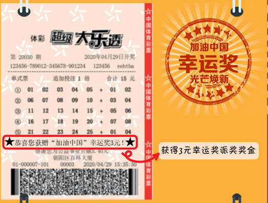 二是“加油中國(guó)”或“光芒煥新”幸運(yùn)獎(jiǎng),所有進(jìn)行追加投注的大樂透彩票,均有機(jī)會(huì)收獲“加油中國(guó)”或“光芒煥新”幸運(yùn)獎(jiǎng)3元。在收獲幸運(yùn)的同時(shí),也讓我們?yōu)樽鎳?guó)加油,期待戰(zhàn)勝疫情、“光芒煥新”的日子早日到來!