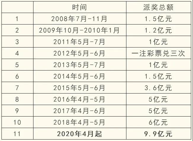 表:大樂透歷年派獎(jiǎng)金額一覽表
