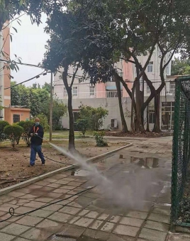 外防輸入,內(nèi)防擴散,中心工作人員每天對場館營房進行消毒外,還在大門口設(shè)置消毒地墊,對所有進入二沙車輛的輪胎、行人鞋底進行消毒。運動員每天接觸的訓(xùn)練場地設(shè)施衛(wèi)生保障也及其重要,中心專門安排工作人員每天對所有訓(xùn)練場館噴藥消毒,同時加大院內(nèi)環(huán)境衛(wèi)生的整治力度,對中心院內(nèi)環(huán)境、宿舍、電梯、道路、綠化等進行無死角噴藥消毒。