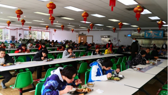 中心對進入食堂就餐人員要求佩戴口罩,為就餐人員配發(fā)一次性手套,對各隊伍進行分時段錯峰就餐,在就餐之前,還有專人監(jiān)督就餐人員餐前洗手。為盡可能降低飛沫傳播的風(fēng)險,食堂實行分菜制和人員保持寬松位置就餐,用餐時按指定座位單向就座,就餐人員間隔一個座位就餐,并建議就餐人員建議吃飯少說話。