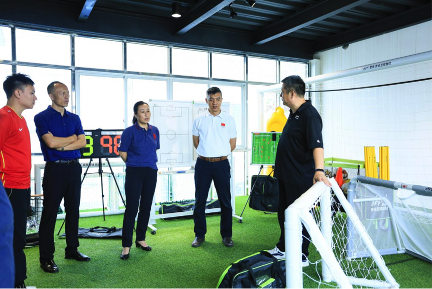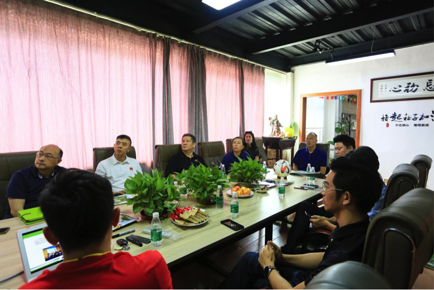 近日,廣東省體育局體育產(chǎn)業(yè)與科教宣傳處處長庾偉健、副調(diào)研員朱志剛,省體育局青少處副處長羅茜、廣東省足球協(xié)會副秘書長席兵等一行到中國足協(xié)·中國之隊足球器材服務(wù)商——“愛高體育”總部進行調(diào)研,愛高體育董事長梁廣仁、運營總監(jiān)梁嘉華、愛高孵化足球管理咨詢項目共鳴體育聯(lián)合創(chuàng)始人曾祥禮介紹了企業(yè)發(fā)展及產(chǎn)品生產(chǎn)等情況。