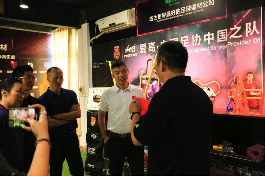 調(diào)研組一行在參觀了愛高體育的專業(yè)足球器材展廳,對愛高旗下職業(yè)足球隊器材系列、校園足球器材系列、幼兒足球器材系列、家用足球器材系列等全系列產(chǎn)品進行了全面而詳細的了解后,充分肯定了愛高體育在足球器材研發(fā)和應(yīng)用方面的深厚積累。