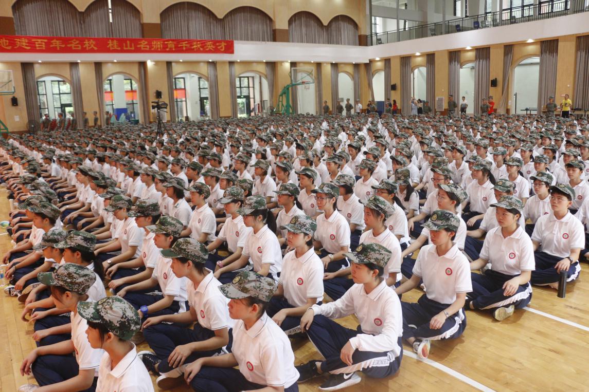丹桂笑迎瑯環(huán)盛會(huì),蟾宮初入礪折新桂。2019年8月26日上午,中山市桂山中學(xué)在陳戈平體育館隆重召開(kāi)2019級(jí)新生軍訓(xùn)開(kāi)訓(xùn)儀式,三鄉(xiāng)鎮(zhèn)武裝部領(lǐng)導(dǎo)、軍訓(xùn)教官,桂山中學(xué)高宏副校長(zhǎng),高一年級(jí)張文映主任、陳建科主任、張會(huì)芬級(jí)長(zhǎng)以及全體班主任、新生參加了開(kāi)訓(xùn)儀式。本次儀式由陳建科主任主持。