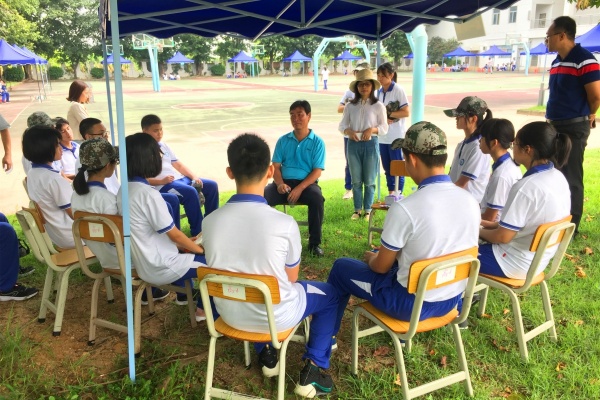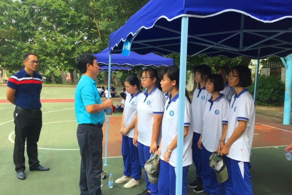 開訓(xùn)頭天,不少同學(xué)仍未適應(yīng)軍訓(xùn)強度,出現(xiàn)不同程度的身體不適。李茂興校長來到各班大本營,關(guān)心正在大本營休息的同學(xué)的身體狀況,鼓勵孩子們流血流汗不流淚,掉皮掉肉不掉隊,爭當(dāng)優(yōu)秀學(xué)員。