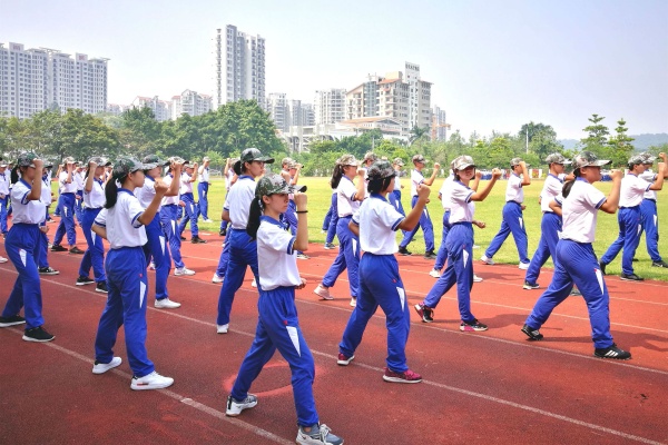 “稍息、立正,齊步走……”2019年8月23日,在中山市濠頭中學(xué)(中山市藝術(shù)學(xué)校)的體育場上,就聽見一陣陣響亮的口令聲從體育場那邊傳來。偌大的體育場上,2019級高一新生們在教官的指揮下,認真地進行隊列訓(xùn)練。學(xué)生們嘹亮的口號,整齊的步伐,颯爽的英姿,構(gòu)成了一道亮麗的風(fēng)景線。
