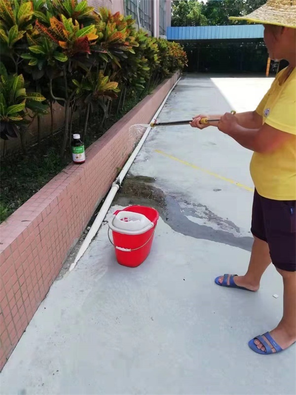 當(dāng)日,學(xué)校組織后勤人員對校園環(huán)境進行大掃除,全面清理積水和雜物,特別是廁所、下水道、操場角落、垃圾桶、花壇等衛(wèi)生死角,以消除蚊蟲的孳生條件。孳生地的清理強調(diào)全方位展開,反復(fù)檢查補漏。另外,學(xué)校還利用化學(xué)藥物消殺蚊蟲,對校園各個角落進行噴藥消毒,采取專業(yè)的方式從源頭切斷蚊蟲孳生。