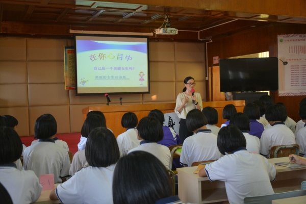女生的青春期教育課在學(xué)校會(huì)議室進(jìn)行,由學(xué)校專職心理老師溫倩藝主講。本次講座的主題是“相約青春,遇見美麗”。溫老師從游戲“大風(fēng)吹”引出主題,并提出“美麗的女生應(yīng)該是……、高雅素質(zhì)從何而來?怎樣做一位受歡迎的美麗女生?”等問題與同學(xué)們討論。最后,對(duì)“怎樣與異性相處?怎樣與家長(zhǎng)溝通?” 提出異性交往小秘訣,親子溝通小妙招。 溫老師運(yùn)用學(xué)生常見案例,形象地詮釋了進(jìn)入青春期后女生所要面臨的問題,并且教給同學(xué)們?cè)撊绾螌?duì)待、如何處理的方式和方法。尤其是在青春期階段如何處理好與異性之間的交往提出了一些方法和建議。希望女孩們樹立正確的美麗理念,由內(nèi)至外修塑自己。