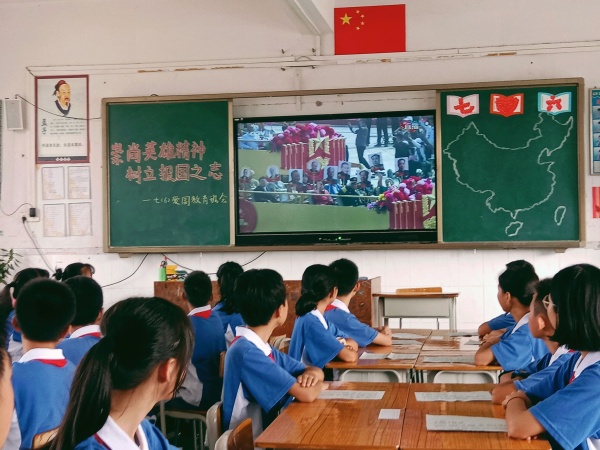 首先,同學(xué)們集體觀看了《新中國(guó)成立70周年閱兵儀式“致敬方陣”》,并回答“為什么當(dāng)老一輩革命者乘車(chē)來(lái)到天安門(mén)前,所有的觀眾都不約而同地起立致敬”,方老師根據(jù)同學(xué)們的回答給予適當(dāng)?shù)囊龑?dǎo)和評(píng)價(jià),讓孩子們懂得:老一輩革命者為了今天的美好生活,甘愿奉獻(xiàn)自己的利益,哪怕?tīng)奚约旱纳麄兪侵袊?guó)的脊梁,是我們的英雄。