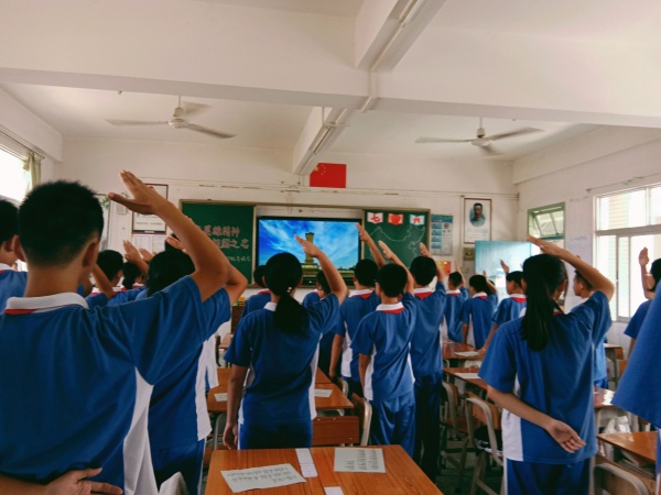 最后,同學(xué)們排隊(duì)將手上的卡紙貼在黑板右側(cè)的“中國(guó)地圖”上,以表達(dá)對(duì)祖國(guó)母親的愛(ài),對(duì)英雄們的崇敬之心!并以合唱《國(guó)歌》結(jié)束了本次班會(huì)主題教育活動(dòng)。