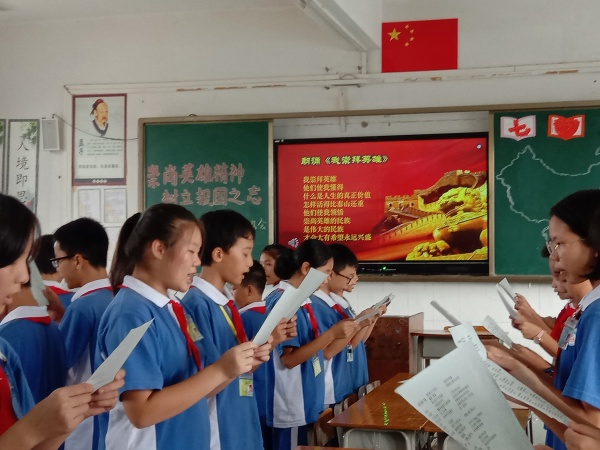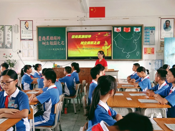 為慶祝中華人民共和國(guó)成立70周年,弘揚(yáng)愛(ài)國(guó)主義精神,引導(dǎo)廣大中學(xué)生銘記英雄、崇尚英雄、捍衛(wèi)英雄、關(guān)愛(ài)英雄、學(xué)習(xí)英雄,珍惜來(lái)之不易的和平生活,將自身的理想與祖國(guó)的發(fā)展相結(jié)合,樹(shù)立報(bào)國(guó)之志,為實(shí)現(xiàn)中華民族偉大復(fù)興中國(guó)夢(mèng)貢獻(xiàn)自己的一份力量。平東學(xué)校于10月23日舉行了“崇尚英雄精神,樹(shù)立報(bào)國(guó)之志”愛(ài)國(guó)主義主題教育班會(huì)課活動(dòng),由七(6)班方曉紅老師執(zhí)教。