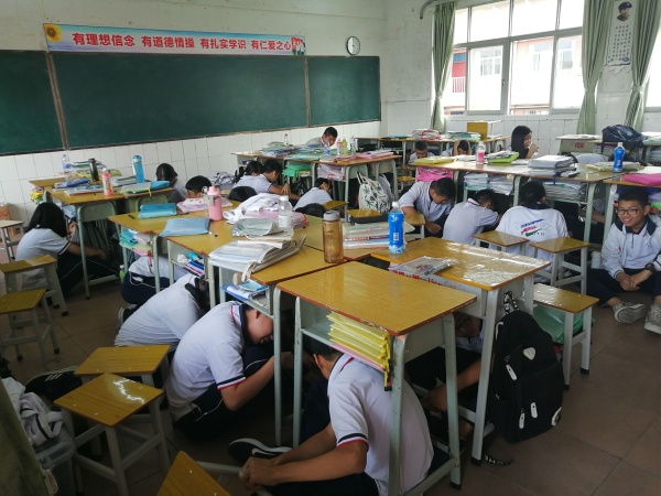 隨著警報(bào)聲響起,各班的學(xué)生在班主任的組織下,迅速而有序地出教室門口,快速地走下樓梯,往指定的避險(xiǎn)區(qū)域跑去,到了避險(xiǎn)地點(diǎn)后,體育委員立即整理隊(duì)伍,向演練指揮部報(bào)告人數(shù)。整個過程僅用了幾分鐘。