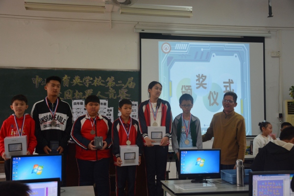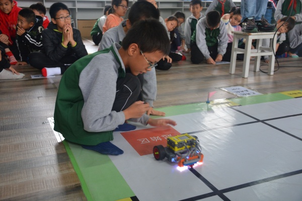 本次大賽由育英學(xué)校信息中心主辦,全校28個(gè)班級(jí)百余人參賽。大賽分年級(jí)進(jìn)行,一、二年級(jí)比賽內(nèi)容為學(xué)生現(xiàn)場(chǎng)拼裝好機(jī)器人,并完成賽跑、高爾夫、射擊、投籃四個(gè)比賽項(xiàng)目。三至六年級(jí)比賽內(nèi)容為高鐵時(shí)代,采用廣東省青少年機(jī)器人競(jìng)賽《現(xiàn)場(chǎng)拼裝挑戰(zhàn)賽》的規(guī)則,比賽地圖與訓(xùn)練地圖類(lèi)似,但不完全相同,各年級(jí)比賽地圖也不相同,均在比賽開(kāi)始時(shí)公布。緊張的比賽開(kāi)始了!選手們熱情高漲,積極面對(duì),出現(xiàn)問(wèn)題,解決問(wèn)題,不斷地調(diào)試自己的機(jī)器人和程序,一副永不言敗的氣勢(shì)。通過(guò)緊張激烈的角逐,一(4)班、二(4)班、三(2)班、四(3)班、五(1)班和六(1)班脫穎而出,獲得了冠軍。學(xué)校領(lǐng)導(dǎo)給在此次比賽中獲獎(jiǎng)和在省賽中獲獎(jiǎng)的同學(xué)進(jìn)行了現(xiàn)場(chǎng)頒獎(jiǎng)。
