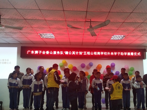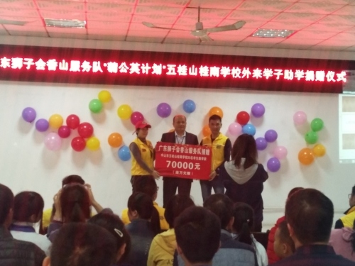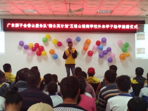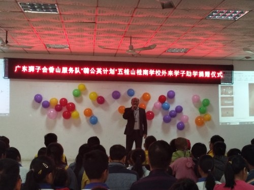 2019年12月27日下午3:30,廣東獅子會(huì)香山服務(wù)隊(duì)來到桂南學(xué)校,在桂南學(xué)校大會(huì)議室舉行了“‘蒲公英計(jì)劃’五桂山桂南學(xué)校關(guān)愛外來學(xué)子助學(xué)”活動(dòng)。參加本次捐贈(zèng)儀式的有廣東獅子會(huì)香山服務(wù)隊(duì)的10位獅兄獅姐、桂南學(xué)校中學(xué)部阮仕斌校長以及桂南學(xué)校35名受資助學(xué)生和家長。