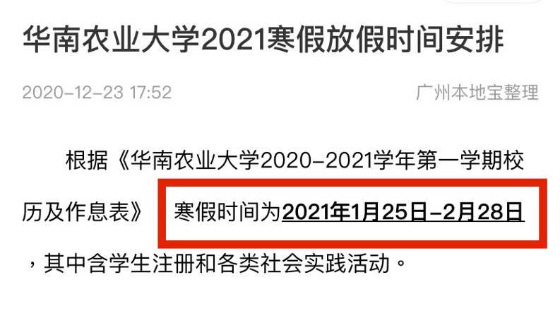 近日,廣東多所高校也陸續(xù)發(fā)布寒假安排一起來看看吧!