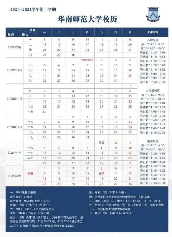 據(jù)華南師范大學的校歷顯示,寒假日期是2021年1月25日-2月28日。