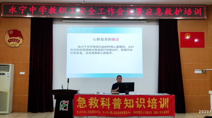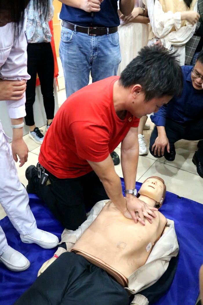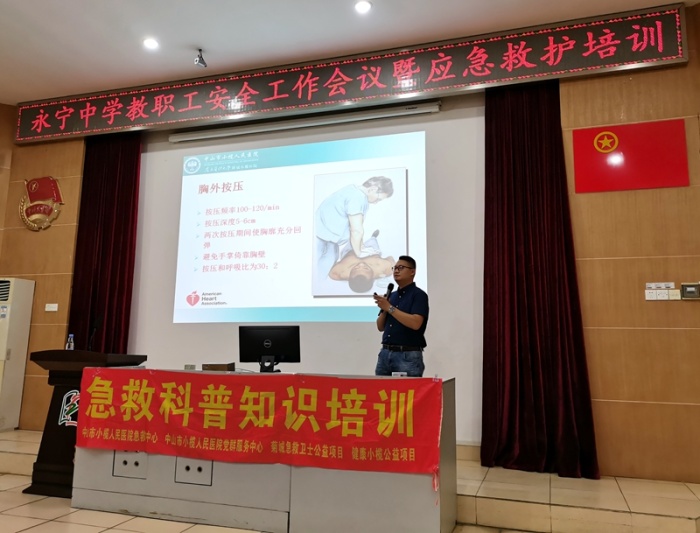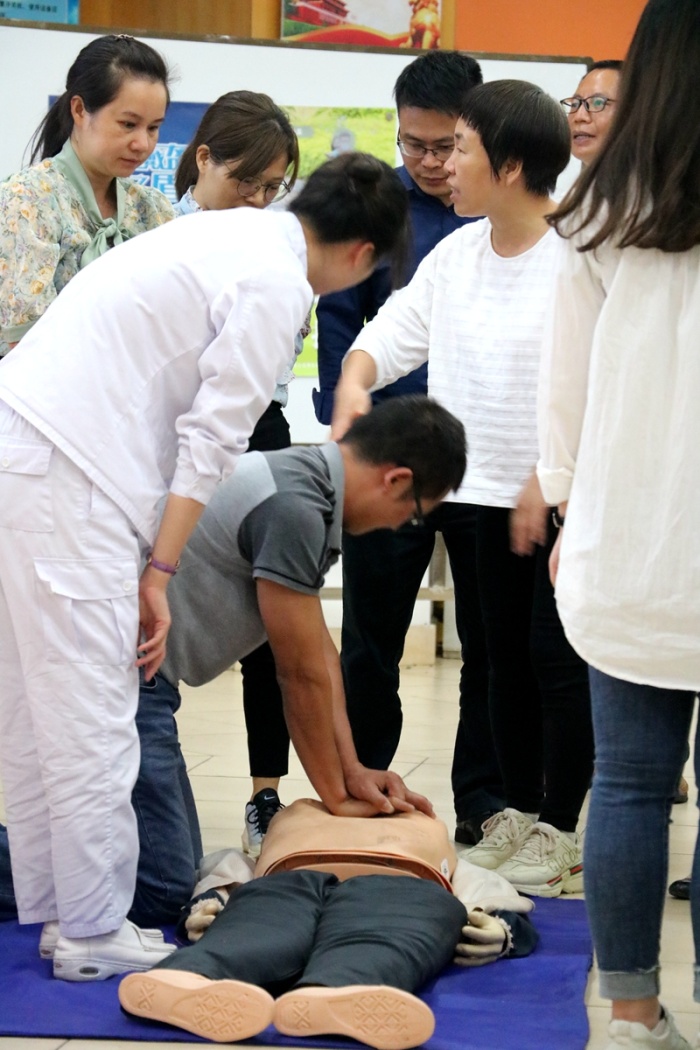 下午教師會,學校專門召開教職工安全工作會議暨應(yīng)急救護培訓現(xiàn)場活動。陳清茂校長主持會議,提出了學校近期安全工作重點、努力方向及常態(tài)防疫要求。本次安全教育和培訓專門請來了小欖人民醫(yī)院急診科賴智權(quán)主任為教職工進行急救知識培訓,小欖人民醫(yī)院周日院醫(yī)生進行“心肺復蘇”現(xiàn)場示范,老師們也爭先恐后上場進行心肺復蘇實操訓練。本次培訓針對性強、實用性高,教職工們受益匪淺。