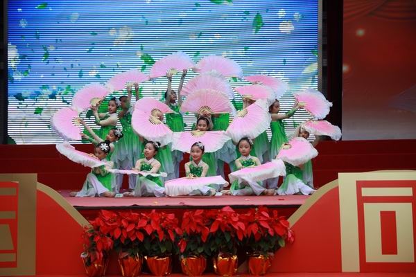 114周年校慶,適逢祖國70周年華誕,雙喜臨門,舉校歡慶。在祖國母親的關(guān)懷下,同學(xué)們健康快樂成長,心中洋溢著對祖國的熱愛之情。校慶的舞臺上,怎能沒有祖國母親的身影?您瞧,舞臺上綻放的《茉莉花》,潔白清雅,清氣靈動,裝點(diǎn)著美麗的校園,裝點(diǎn)著我們熱愛的祖國;“茉莉花”剛剛旋下舞臺,一群青春洋溢的《中國好少年》隆重登場,他們邊唱邊舞,贊頌著當(dāng)代中國好少年,贊頌著滘口詩禮好少年;五年級的經(jīng)典朗讀《祖國啊,我親愛的祖國》則滿懷深情, 贏得了觀眾們陣陣熱烈的掌聲;欖城絲管日紛紛,半入江風(fēng)半入云,一曲合奏《大中國》悠揚(yáng)響起,葫蘆絲的清幽,古箏的優(yōu)雅,非洲鼓的激昂,讓全體嘉賓與師生沉醉其中,都不約而同地?fù)]動著手中的五星紅旗,臺上臺下頓時連成一片紅色的海洋……