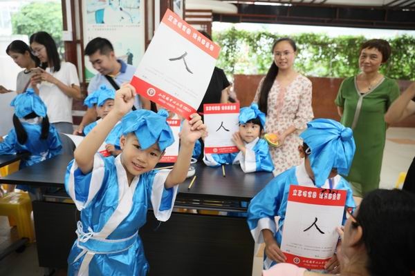 正衣冠,拜師長,朱砂啟智“開天眼”,啟蒙描寫“學(xué)人字”,擊鼓明志樹理想。這種傳統(tǒng)的開筆入學(xué)儀式,瞬間將孩子們帶回幾千年前,重走千年前華夏啟蒙之路。