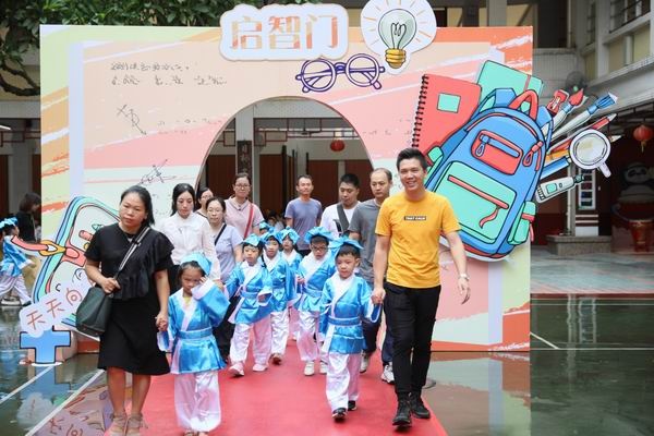 上午9點(diǎn),伴隨著熱烈的掌聲,一年級的家長代表牽著孩子們的手,踏上了象征著希望、活力、健康、幸福的紅地毯,走過七彩啟智門,加入了滘口小學(xué)這個有愛的大家庭?!皢⒅情T”寓意開啟智慧之門,孩子們將從這里跨出人生的第一步,去思考,去探索,向著更高更遠(yuǎn)的方向邁進(jìn)。他們正式成為一名光榮的小學(xué)生了!這一刻,孩子們笑靨如花,快樂洋溢在臉龐,自信從眉宇間飛揚(yáng),幸福與驕傲在心底流淌……