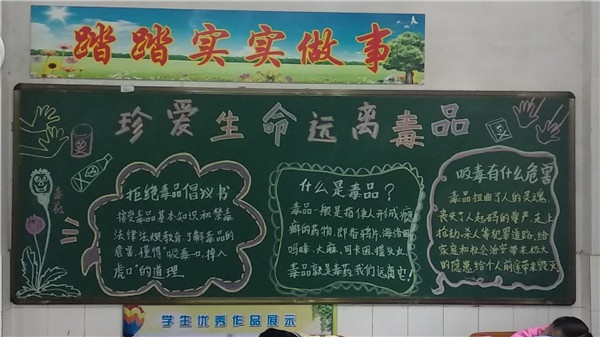 本次活動,既讓同學(xué)們進(jìn)一步認(rèn)識了毒品的危害性,增強了禁毒意識,構(gòu)筑起了校園毒品預(yù)防教育的“防火墻”,又鍛煉了同學(xué)們創(chuàng)意、書寫、繪畫、收集材料等多種能力,培養(yǎng)了學(xué)生健康的生活情趣和社會責(zé)任感,讓學(xué)生健康,陽光,快樂地生活和生活,發(fā)揮了德育教育的職能。