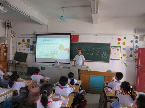 主題班隊會上,各班級針對父親節(jié)的由來展開了詳細的解說,原來世界上第一個父親節(jié)是在1910年誕生在美國,是為了紀念獨自一人撫養(yǎng)六個孩子長大成人而導致在1909年過勞死的斯馬特先生而設立的,從而教育孩子要感恩父親的付出。各班級就父親節(jié)的內容展開討論,以什么形式來慶祝父親節(jié)、為父親送上小禮物、給父親畫一幅畫等,把對父親的愛傾注在畫筆中,為父親送上最真摯的祝福。