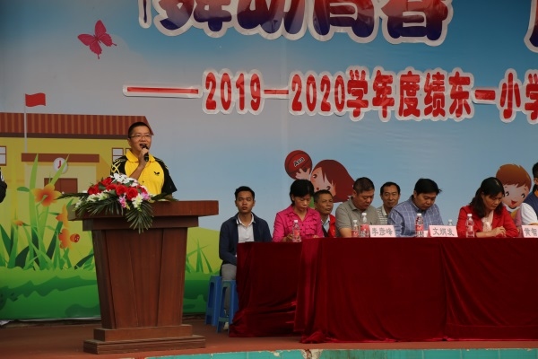 絲絲秋意問(wèn)候著江南大地,行走在微涼的風(fēng)里心曠神怡。2019年10月31日,在這美好時(shí)光里,迎來(lái)了我們績(jī)東一小學(xué)2019-2020學(xué)年度體育節(jié)、藝術(shù)節(jié)開(kāi)幕式。這次的開(kāi)幕式文體融合,是績(jī)東一小學(xué)本學(xué)年的一場(chǎng)面向全體師生的體育盛會(huì)、藝術(shù)盛典。參加本次開(kāi)幕式的領(lǐng)導(dǎo)有:小欖鎮(zhèn)體委主任黃應(yīng)幫先生,小欖鎮(zhèn)教育事務(wù)指導(dǎo)中心副主任曾文春先生,績(jī)東一社區(qū)黨委副書(shū)記、居委會(huì)主任黃慧賢女士,績(jī)東一社區(qū)黨委副書(shū)記唐權(quán)和先生,績(jī)東一社區(qū)黨委副書(shū)記麥植堂先生,中山市科恒五金制品有限公司經(jīng)理吳國(guó)強(qiáng)先生,菊城文學(xué)社社長(zhǎng)伍漢文先生,績(jī)東一小學(xué)李彥峰校長(zhǎng),兄弟學(xué)校領(lǐng)導(dǎo)和老師及各班家長(zhǎng)。本次開(kāi)幕式由績(jī)東一小學(xué)張桂榕主任負(fù)責(zé)主持。