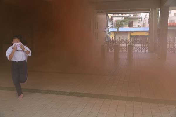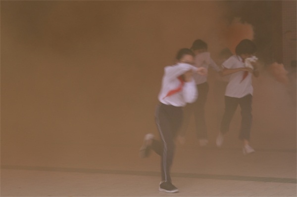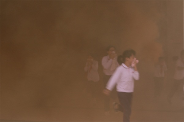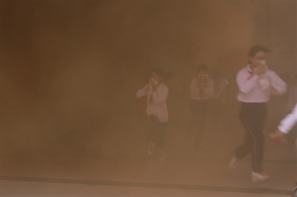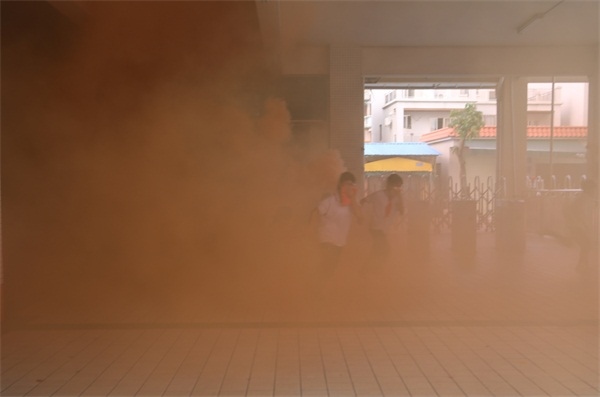為保證活動地順利進行,學校提前告知孩子們當天準備好毛巾,但為了提高學生的應急能力不告訴學生具體的演練時間。警報一鳴起,全體學生迅速用毛巾捂住口鼻,快速地按學校指定的疏散路線撤離教學樓,集中到運動場。為了讓師生真實體驗此過程,本次還在各個逃生必經(jīng)之處點燃了煙霧彈,現(xiàn)場濃煙滾滾,效果逼真。隨后,吳主任點評了本次消防安全演練。吳主任向同學們講解了一些逃生知識要點,特別是要用濕布捂住口鼻,有利防止被煙霧熏倒而導致喪失生命。