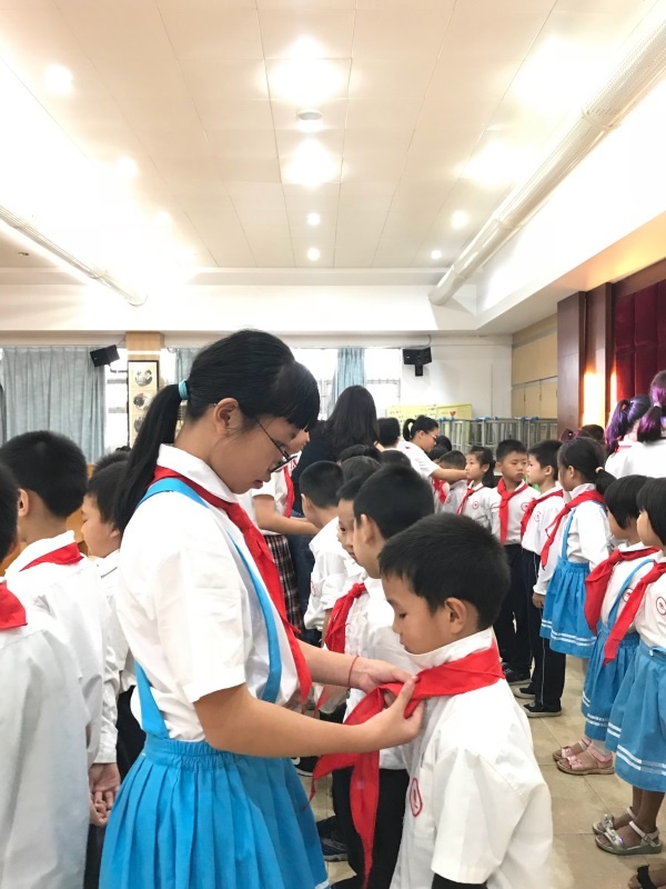 2018年10月15日下午,細雨如絲,校園新栽的白玉蘭葉尖上掛著晶瑩的雨珠。對于績東一小學(xué)低年級的部分孩子而言,這是一個難忘的日子,因為今天他們戴上了鮮艷的紅領(lǐng)巾,光榮地加入了中國少年先鋒隊,成為一名真正的少先隊員。