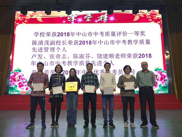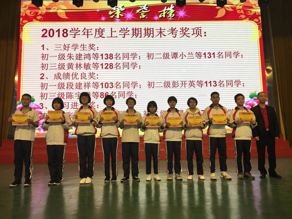 開學(xué)典禮由教學(xué)處黃明英副主任主持,她首先向全體師生報(bào)喜訊:學(xué)校榮獲2018年中山市中考質(zhì)量評(píng)價(jià)一等獎(jiǎng)、2018年度鎮(zhèn)素質(zhì)教育目標(biāo)評(píng)估先進(jìn)單位。陳清茂副校長榮獲2018年中山市中考教學(xué)質(zhì)量先進(jìn)管理個(gè)人,盧發(fā)、張奇志、陳淑芬、饒建順老師榮獲2018年中山市中考教學(xué)質(zhì)量先進(jìn)個(gè)人,范小若榮獲2018年中考優(yōu)秀監(jiān)考員稱號(hào)。然后由陳清茂副校長宣讀2018學(xué)年度上學(xué)期期末考獎(jiǎng)項(xiàng)和各級(jí)各類學(xué)生獲獎(jiǎng)名單,并隆重頒獎(jiǎng)。