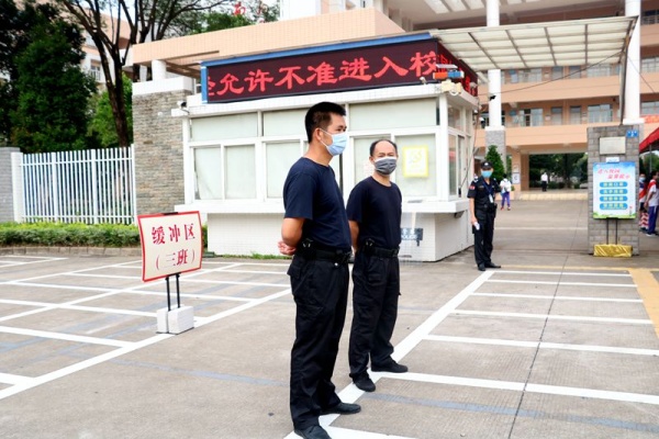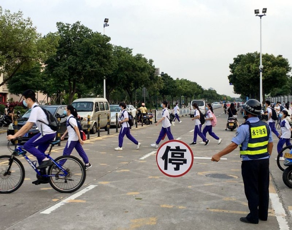 5月11日早上6:50分,永寧中學(xué)全體教育管理干部、值日老師、校醫(yī)和永寧衛(wèi)生院駐點(diǎn)醫(yī)生全部到崗,做好迎接第二批師生返校歸來。小欖鎮(zhèn)黨委劉世光委員、小欖鎮(zhèn)教育事務(wù)指導(dǎo)中心羅柏洪專干、永寧衛(wèi)生院黃映紅院長到現(xiàn)場指導(dǎo)。永寧派出所干警、永寧治保會治安員和學(xué)校保安員在現(xiàn)場維持秩序,全方位保障學(xué)校門口家長和師生有序、安全、有序地返學(xué)。