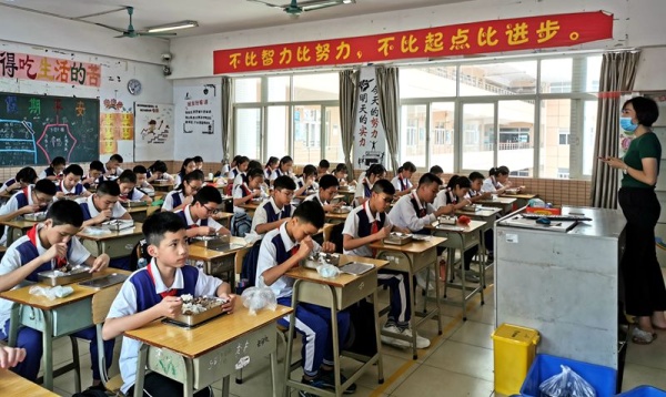 最后,全體班主任和學(xué)校管理干部分班級進(jìn)教室,對學(xué)生們進(jìn)行用餐流程和要求的實(shí)操培訓(xùn),用心守護(hù),確保學(xué)生用餐安全。