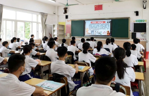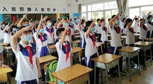 接著,陳清茂校長直播講授 《返校復(fù)學(xué)第一課》,帶領(lǐng)著全體師生在教室舉行升旗儀式,觀看《疫情里的中國精神》視頻,希望同學(xué)們時(shí)刻將家國情懷厚植于心,時(shí)刻將嚴(yán)格自律牢記于胸。隨后,楊青華副校長開展《歡迎來到心理課堂 》心理健康講座,教會學(xué)生如何巧妙的化解疫情期間親子之間的矛盾,用心引導(dǎo)學(xué)生從線上學(xué)習(xí)回到教室學(xué)習(xí)等心理情緒調(diào)節(jié)的方法和技巧。