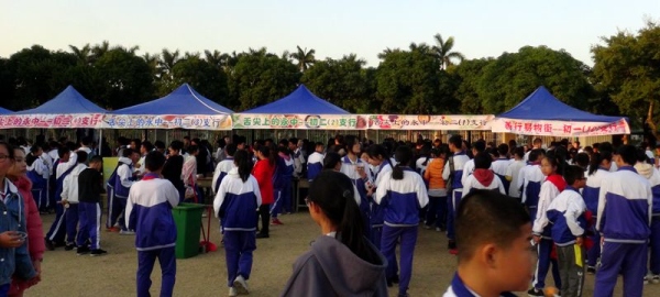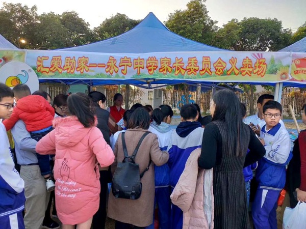 不過,讓學生們最開心的還是在運動場上舉行的第九屆永中公益銀行公益嘉年華活動。演出一結(jié)束,同學們就興高采烈、爭先恐后的涌向?qū)W校運動場。在跑道周圍陳列著“初一善行易物街”、“初二舌尖上的永中”、“初三益智游戲一條街”、“家委會義賣區(qū)”、“時光信箱”、青年之家·學習社、永中公益銀行知識大轉(zhuǎn)盤、永寧社區(qū)禁毒公益互動區(qū)、E2·綠地球環(huán)保體驗區(qū)、English corner攤位、《獅樂萬家》之”非遺~醒獅”公益體驗區(qū)、鄰舍衣物回收攤位、衛(wèi)愛行動(由小欖鎮(zhèn)民強“普洱”茶莊提供義賣物品,所有義賣善款全額資助永寧中學初二3班梁**同學)等40多個攤位。同學們個個高舉著永中公益銀行存折,做起公益活動,玩起心愛的游戲、互換心愛物品、購買心愛的義賣物品捐獻自己的愛心。體現(xiàn)了“善行換積分,積分換歡樂”的志愿精神。、