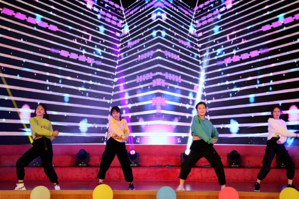 接下來進行文藝科技表演。舞蹈社團的《盛世中國》紅紅火火,歡天喜地;《永中武林風》跆拳道、武術(shù)表演刀光劍影,龍騰虎躍;舞蹈社團的拉丁舞《激情飛揚》青春靚麗,活力四射;教師歌舞表演《共圓中國夢》展望未來,豪情滿懷;學校航模社團展示《飛向藍天》,把整個文藝匯演推向高潮……