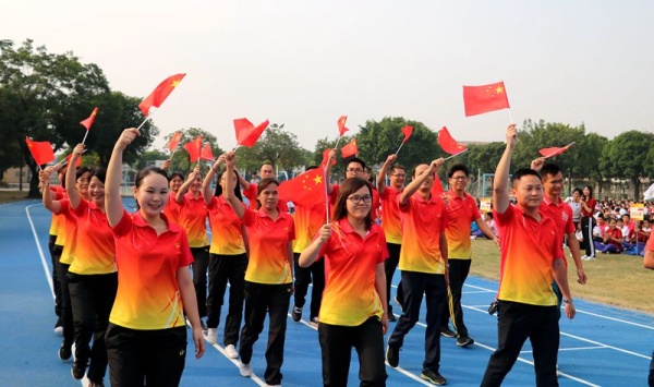 最后,小欖鎮(zhèn)體委主任黃應幫先生用鏗鏘有力的語調宣布“校運會開幕”!