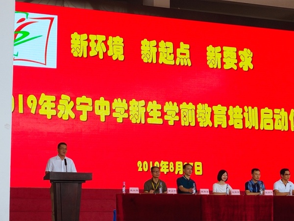 2019年8月27日上午8點,艷陽高照,中山市永寧中學2019級初一新生學前教育培訓活動啟動儀式在學校體育館隆重舉行。