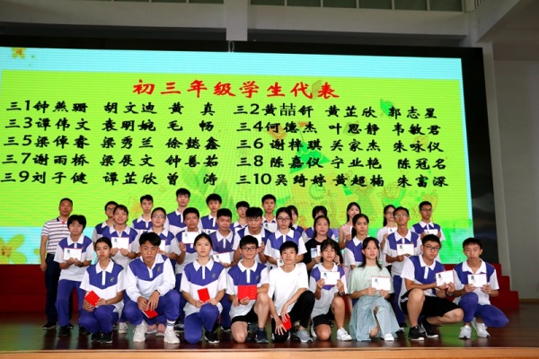 首先,劉鵬校長致辭。劉校長衷心感謝初三全體教師辛勤付出,衷心祝愿初三學(xué)子們都能夠?qū)崿F(xiàn)自己的理想,希望同學(xué)們?;啬感?纯?。劉校長并為學(xué)生代表頒發(fā)畢業(yè)證書。緊接著,龍小紅主任宣讀優(yōu)秀畢業(yè)生名單,并為他們頒獎。
