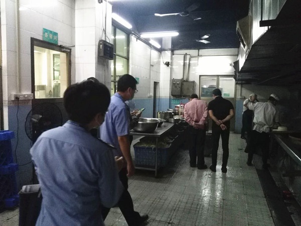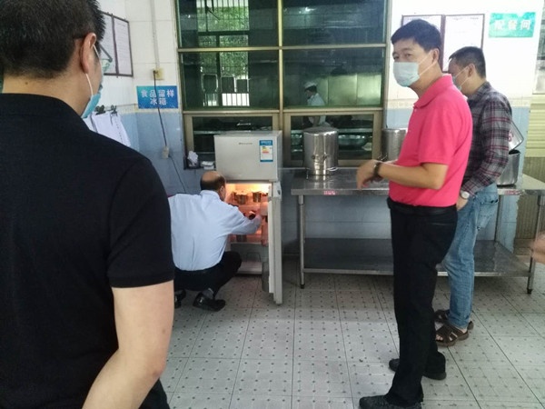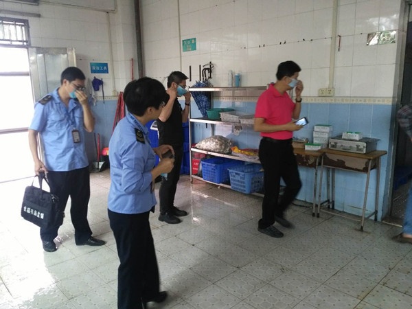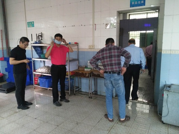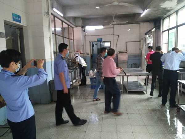 本次飛行檢查主要主要檢查了學校飯?zhí)迷牧系牟少彙⒐痰乃髯C索票、各專間的管理、食品的留樣,相關制度的公示,資料的歸檔等情況。檢查組成員認真地檢查各功能間的衛(wèi)生以及防護措施,制作流程和留樣質(zhì)量等工作,最后一致肯定了東陽學校食品安全工作落實到位,責任到人,各細節(jié)工作布置得妥當,飯?zhí)玫牧魳?,制作流程都能按要求保質(zhì)保量。并給了幾點建議:烹調(diào)間荷臺上用瓦缽盛裝的各種用于烹調(diào)的佐料要對應標明相關物品的標簽;預進間的洗手池要徹底清洗干凈;粗加工間和備餐間的紗窗門,要安裝彈簧,能夠讓此門自動閉合;食品留樣冰箱里的留樣,容器上面的標簽日期要精確。并提醒采購人員要提高警惕,物品來源一定要索證索票,要與正規(guī)貨商簽訂相應的合同,所有的有葉蔬菜、無葉瓜果都要進行藥檢,預防萬一;飯?zhí)貌糠衷O備要求更新、維修。檢查組田醫(yī)生也提醒,要老師們對學生進行毒蘑菇預防教育工作,學校食品安全要嚴把關,留樣、制作流程要相關人員跟進。教育事務指導中心黃校長強調(diào):食堂主管人員、食品衛(wèi)生監(jiān)督員在食品安全上一定要打起十二分精神,不得馬虎,不得掉以輕心,堅決杜絕一切安全事故的發(fā)生。