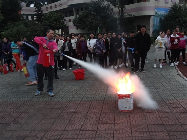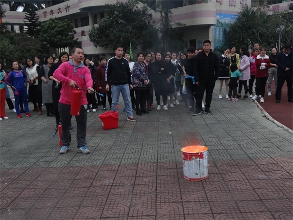 演練校委會結(jié)合實際情況,認真細致的制定了演練活動方案,明確職責要求。培訓首先由何主任強調(diào)防火的重要性及必要性,活動現(xiàn)場,并就干粉滅火器的正確使用方法進行了現(xiàn)場講解、示范、指導,強調(diào)使用滅火器要保持鎮(zhèn)靜,遇到火情千萬不要慌亂失措,牢記“一晃、二拉、三壓、四噴” 要領(lǐng),掌握正確的使用方法,提高自救自護能力。隨后,在何文勇、何林、謝平主任的協(xié)助下,在場教職工紛紛上陣體驗滅火器的使用操作方法,現(xiàn)場進行了滅火演練。