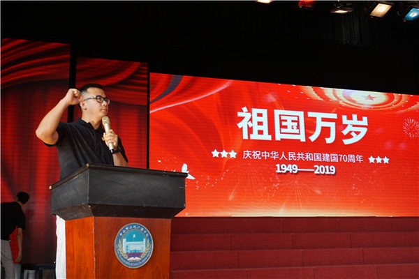 “我和我的祖國,一刻也不能分割。無論我走到哪里,都流出一首贊歌……” 以歌獻(xiàn)禮,禮贊祖國,一首《我和我的祖國》旋律響起,瞬間點(diǎn)燃了全場熱情。緊接著《歌唱祖國》《我愛你,中國》的愛國歌曲聯(lián)唱,奏響了熟悉的旋律,全校師生情不自禁揮動(dòng)手中的國旗,用深情的歌聲表達(dá)對(duì)祖國的無限熱愛與祝福,場面既壯觀又感人。