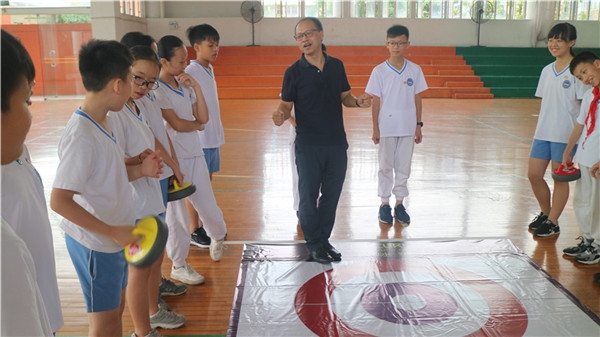 優(yōu)雅和激情并舉的冰壺運(yùn)動(dòng),最早起源于14世紀(jì)的英格蘭的古老運(yùn)動(dòng),“地冰壺”運(yùn)動(dòng)則是把“冰壺”運(yùn)動(dòng)的體育運(yùn)動(dòng),進(jìn)一步把它發(fā)揚(yáng)光大。5月21日下午,香港成長(zhǎng)教育協(xié)會(huì)導(dǎo)師來廣源學(xué)校為孩子們講授一節(jié)別樣的體育課——地冰壺運(yùn)動(dòng)。小欖鎮(zhèn)統(tǒng)僑辦主任、僑聯(lián)副主席鄭紫云女士,廣源學(xué)校校長(zhǎng)韋銀好女士及兄弟學(xué)校的老師們到現(xiàn)場(chǎng)觀摩。
